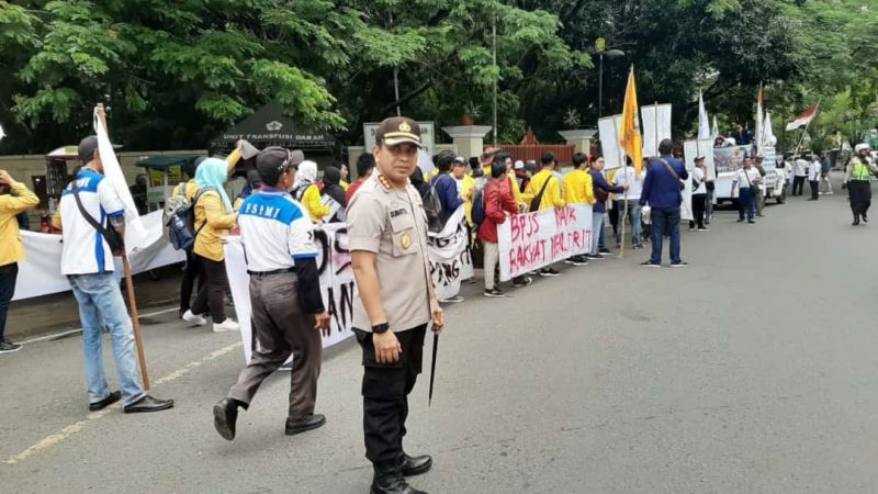 Massa juga didampingi dari pihak Dinas Nakertran dan BPJS Kalsel.
