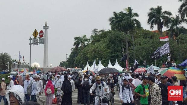 Pantauan CNNIndonesia.com, pukul 11.00 WIB peserta mulai keluar dari pintu Monas yang letaknya di seberang Patung Kuda. Mereka yang mengikuti aksi sejak pagi di sekitar Patung Kuda juga mulai membubarkan diri.