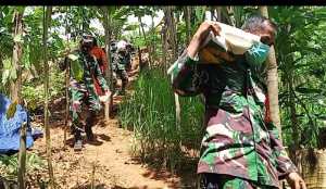 Melewati medan yang lumayan licin dan cukup menantang, Dandim dan anggota menyalurkan bantuan ke Desa Arangani, kampung Limbuung dilanjutkan ke Desa Patikalain Kecamatan Hantakan.