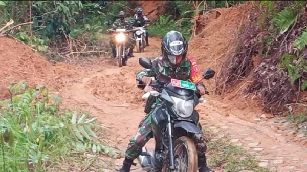 SuarIndonesia – Mengendarai sepeda motor trail, Komandan Kodim 1002/Barabai Letkol Inf Muh Ishak H. Baharuddin.S.I.P.,M.I.,Pol bersama anggota mendistribusikan bantuan logistik kepada warga korban bencana banjir/longsor di Kabupaten Hulu Sungai Tengah (HST). Selasa (2/2/2021).