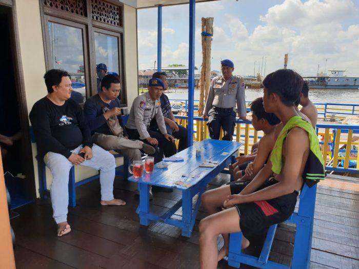Disi katanya, anggota hanya mengamankan, memberikan himbauan bahayanya melakukan seperti itu yaitu, menaiki kelotok dan terjun di atas kelotok.