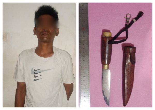 Sesampainya di TKP tersangka tak ada di tempat, tetapi anggota melihat tersangka berdiri tak jauh dari rumahnya, langsung mendekati dan melakukan penggeledahan di tubuhnya, menemukan sajam. (DO)