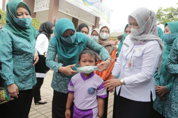 Pada kunjungan kali ini, TP PKK Provinsi Kalsel juga memberikan bantuan 250 masker kepada Desa Sinar Bulan dan 550 masker diserahkan secara simbolis kepada Ketua TP PKK Tanah Bumbu.