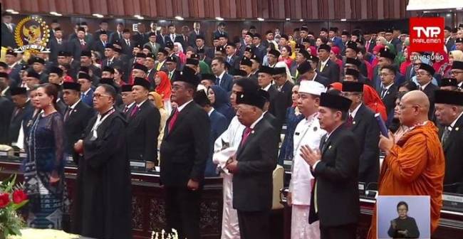 Sidang paripurna dengan agenda pengucapan sumpah dan janji jabatan yang digelar di Gedung DPR RI Senayan Jakarta itu dihadiri langsung oleh Presiden RI Joko Widodo.