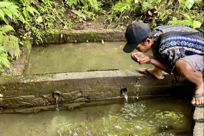Sebelum era tahun 2000, lelaki yang kini sudah memiliki dua anak dan satu cucu itu, dahulu bersama penduduk di kampung Dayak yang tidak lebih dari 10 kepala keluarga, mereka terbiasa berjalan kaki turun ke kaki gunung yang berjarak belasan kilometer untuk mencari air. Tinggal di wilayah pegunungan, di puncak bukit, tidak menjadikan penduduk di sini mudah mendapatkan sumber mata air.