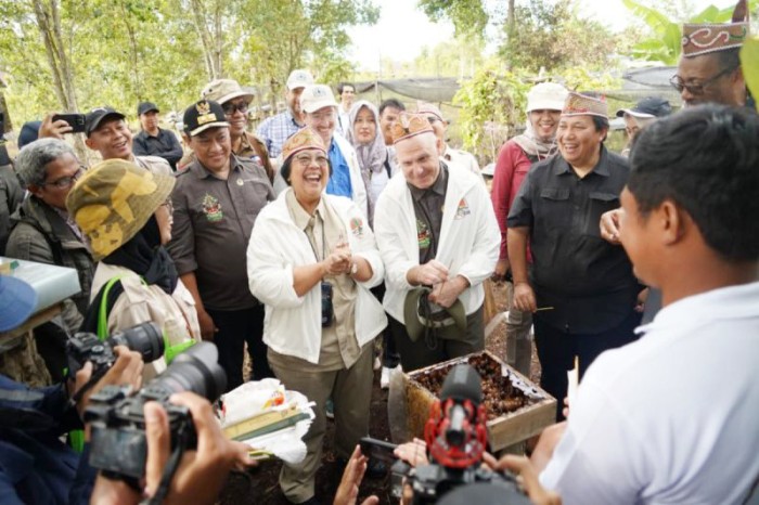 SuarIndonesia — Menteri Lingkungan Hidup dan Kehutanan (LHK), Siti Nurbaya Bakar bersama Delegasi Kementerian Kehutanan Amerika Serikat (AS) mengunjungi Perhutanan Sosial yang berada di Desa Tuwung, Kabupaten Pulang Pisau, Kalimantan Tengah, Rabu (24/1/2024).