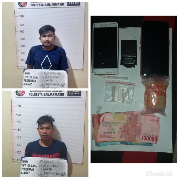 SuarIndonesia – Dua pengedar narkotika, Egi Gunawan (22) dan M Yunus alias Codet (24), ditangkap anggota Buru Sergab Polsekta Banjarmasin Barat, saat menunggu pelanggannya di Jalan Banyiur Dalam Banjarmasin Barat, Selasa (12/11) lalu, sekitar pukul 17.00 WITA.