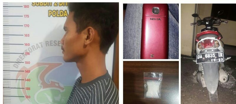 Pelaku kita tangkap Jumat (15/2) petang lalu,” kata Direktur Resnarkoba Polda Kalsel, Kombes Pol Wisnu Widarto melalui Kasubdit II, AKBP Andi A, Minggu (17/2)