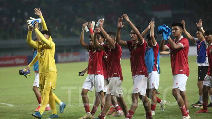Pemain Timnas Indonesia berjalan meninggalkan lapangan usai pertandingan Piala AFF U-19 2022 melawan Thailand di Stadion Patriot Candrabhaga, Bekasi, Jawa Barat, Rabu, 6 Juli 2022. (Dok. Tempo)