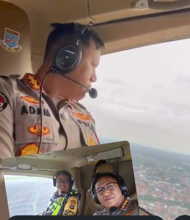 Pemantauan arus lewat udara dengan helikopter milik Satpolairud dilakukan Kabid Humas Polda Kalsel, Kombes Pol Adam Erwindi bersama Direktur Lalu Lintas (Dirlantas), Kombes Pol. Fahri Siregar.