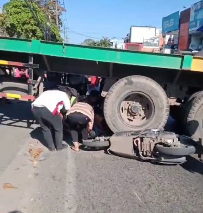 SuarIndonesia – Seorang pria dengan sepeda motor Honda nyungsep di bawah truk kontainer di Jalan Simpang 5 Kamboja, Banjarmasin, dan videonya viral, Senin (29/7/2024).