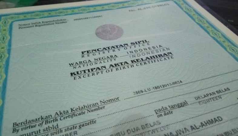 Aturan tersebut juga berlaku pada pemberian nama anak yang dicantumkan pada lembaran akte kelahiran
