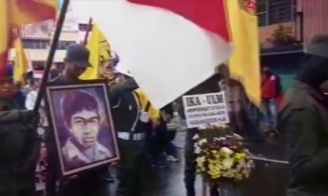 Kilas perjuangan Hasanuddin HM, tepat di depan Toko Roti Minseng Jalan Pangeran Samudera, lokasi gugurnya sang Pahlawan Ampera, dan penaburan bunga dilakukan Ketua IKA ULM, HG (P) Rusdi Effendi AR, diikuti pengurus dan Keluarga Besar IKA ULM.