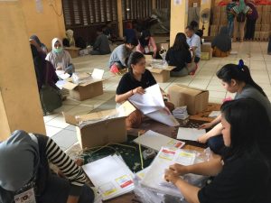 Suarindonesia – Tangan Mustika, begitu terampil melipat kertas surat suara Pemilu 17 April mendatang. Mahasiswi salah satu perguruan tinggi swasta ini, adalah salah satu dari 66 orang yang ditugaskan oleh KPU Banjarmasin dalam pelipatan surat suara.