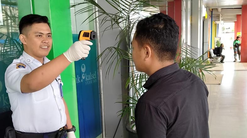 Menyikapi hal ini Bank Kalsel KCPS Banjarbaru sesuai arahan dan surat Edaran manajemen Bank Kalsel tetap melaksanakan pelayanan secara optimal kepada para nasabah Bank Kalsel dengan melakukan antisipasi seperti menyiapkan hand sanitizer, masker dan melakukan scan thermal/ pemeriksaan suhu tubuh kepada nasabah, stakeholder maupun pegawai Bank Kalsel yang akan memasuki kantor Bank Kalsel KCPS Banjarbaru.