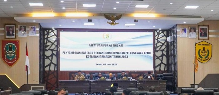 SuarIndonesia – Wakil Wali Kota Banjarmasin, Arifin Noor mengikuti Rapat Paripurna Tingkat I perihal Penyampaian Raperda tentang Pertanggungjawaban Pelaksanaan Anggaran Pendapatan dan Belanja Daerah (APBD) Kota Banjarmasin tahun anggaran 2023, di Ruang Rapat Paripurna DPRD Kota Banjarmasin, pada Senin (3/6/2024).