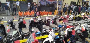 Itu bersama ratusan kendanraan sebagai barang bukti, deretan dokumen kendaraan palsu, serta peralatan untuk aksi pelaku gasak kendnaraa tersebut.