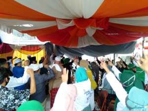 Kalaupun nanti ada yang mengiming-imingi uang Rp 500 ribu, 1 juta atau 2 juta agar tidak turun ke TPS, ambil saja uangnya tapi tetap turun ke TPS dan pilih nomor 3, pemimpin yang jelas dan religius,” ucap Pa’le dan disambut dengan tepuk tangan yang meriah.