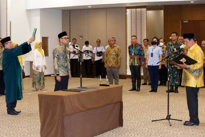 Prosesi pengukuhan dan pengambilan sumpah jabatan dilakukan oleh Gubernur Kalimantan Selatan, DR.(HC).H.Sahbirin Noor, S.Sos.,M.H dengan disaksikan Bupati/Wali Kota Kabupaten/Kota se-Kalimantan Selatan, Jajaran FORKOMPINDA Kalsel, Kepala Dinas Prov. Kalsel, Jajaran Dewan Komisaris, Direksi, Group Head, Direktur UPZ, Kepala Divisi maupun Kepala Kantor Cabang Bank Kalsel, serta para tamu undangan baik dari kalangan BUMN/D, Media, dan instansi lainnya, di Ruang Callamus Rattan Inn Hotel, Banjarmasin, Rabu (8/2/2023).