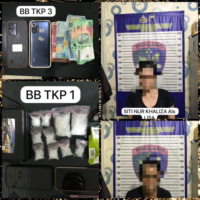 Pasangan itu warga Banjarmasin Barat. Menurut Kasat Polairud Polresta Banjarmasin, AKP Dading Kalbu Adie penangkapan keduanya bermula dari pengembangan kasus narkoba yang menyeret Hendra Wahyudi alias Kiki warga Jalan Sulawesi Gang Pelopor Kelurahan Pasar Lama Kecamatan Banjarmasin Tengah.