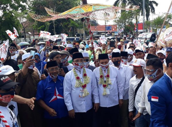 Jika kehadiran Birin-Muhidin diatar ojek online, maka pasangan Denny-Difri digiring lantunan kasidah Sinoman Hadrah, Sabtu (5/9/2020).