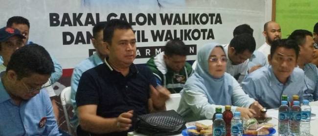 Calon Wali Kota Banjarmasin H Yamin HR menggelar konferensi pers usai mendapatkan hasil sementara dengan persentasi 70 persen masuk data dari tim pemenangan dengan kemenangan mutlak di 5 kecamatan se-Kota Banjarmasin.