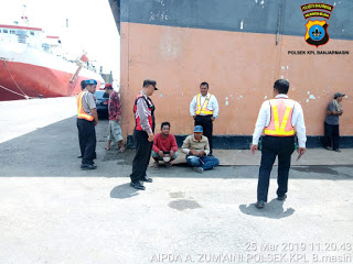 Patroli Cipta Kondisi dan Operasi Pekat yang diadakan kali ini dengan sasaran para ABK dan Buruh yang sedang tidak bekerja melakukan Pengawasan Aktivitas Bongkar Muat barang di Pelabuhan Martapura Baru.