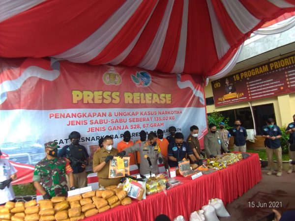 SuarIndonesia – Pecahkan rekor pengungkapan dilakukan jajaran Sat Reznarkoba Polresta Banjarmasin dengan 135,02 Kg sabu dan 528, 67 ganja.