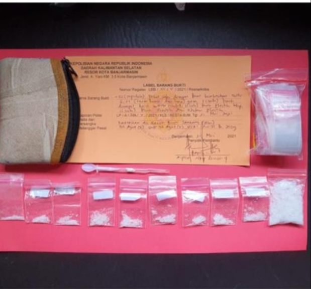 Barang bukti 10 paket sabu ditemukan petugas ketika berada di dalam rumahnya di Jalan Kuripan Komplek Cempaka Putih Rt. 08 Banjarmasin Timur, Jumat (21/5/2021) lalu sekitar pukul 12.30 WITA.