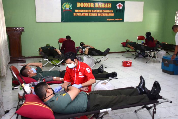 SuarIndonesia – Peduli Prajurit Korem 101/Antasari, di tengah pandemi Covit-19, terus bersemangat demi kemanusiaan dengan melaksanakan donor darah, (7/4/2020).