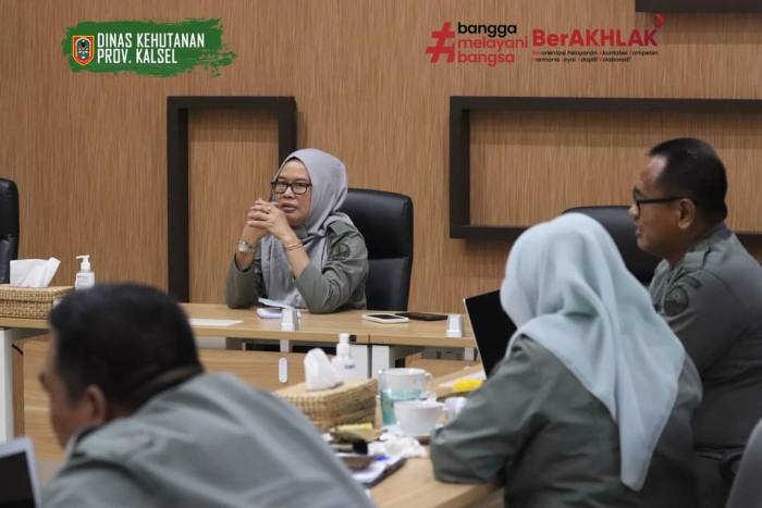 SuarIndonesia – Dalam rangka mendukung kelancaran pelaksanaan kegiatan Penghijauan Lingkungan di Luar Kawasan Hutan Negara, jajaran pejabat Dinas Kehutanan Provinsi Kalimantan Selatan (Dishut Kalsel) mengadakan rapat koordinasi di Aula Rimbawan 1 Dishut.