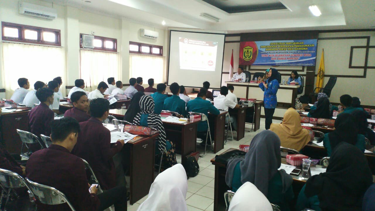 Suarindonesia – Perwakilan pelajar dari berbagai sekolah tingkat SMA di Banjarmasin diberikan sosialisasi penyuluhan pencegahan peredaran penggunaan minuman keras dan narkoba oleh Kesbangpol Kota Banjarmasin bekerjasama dengan BNNK Banjarmasin, BPOM, Kemenag dan Polresta Banjarmasin, Senin (18/2) di Aula Diklat Kota Banjarmasin.
