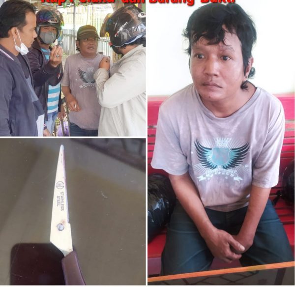 Di sana anggota mengamankan barang bukti satu buah gunting masih ada bekas bercak darah.