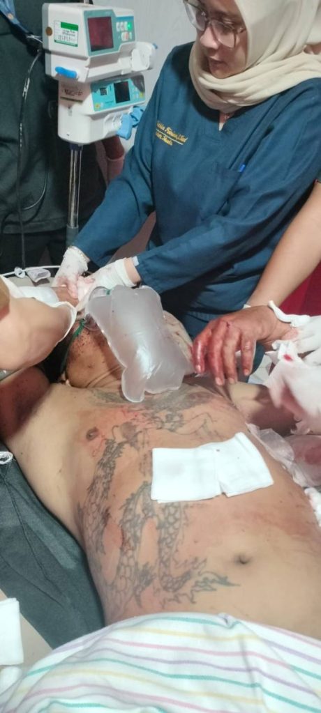 Korban Imi Cobra, warga Jalan Tembus Mantuil Komplek Aldi II Banjarmasin Selatan, mengalami luka sekujut tubuh akibat bacokan senjata tajam, kini pelarawan di Rumah Sakit Umum Daerah (RSUD) Ulin Banjarmasin.