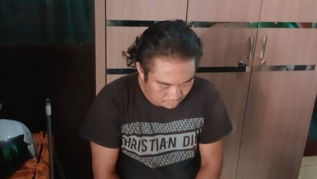 Adi (36), usai melakukan penganiayaan menyerahkan diri kepada anggota Polsek Banjarmasin Selatan, pada Minggu (23/2/2025) malam.