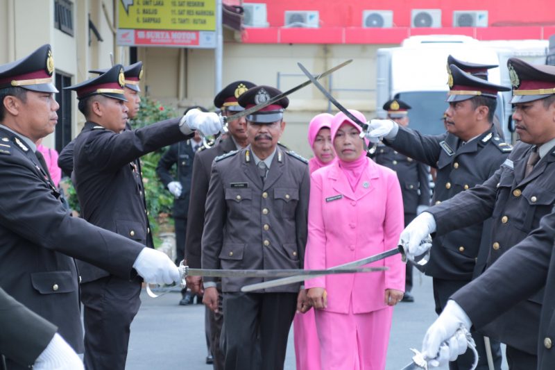 Namun, ada yang berbeda dari biasanya, 13 orang polisi yang memasuki masa purna tugas atau pensiun dengan menggelar acara tradisi pelepasan pedang pora.