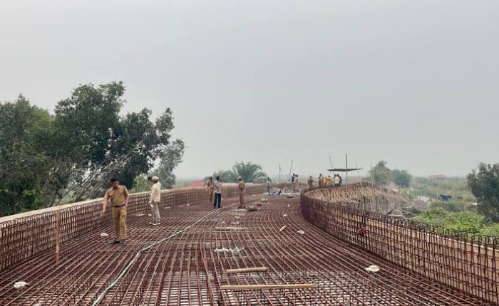 SuarIndonesia – Progres pengerjaan Jembatan Bahandang yang terletak di Desa Jejangkit, menghubungkan antara Baritokuala (Batola) dan Kabupaten Banjar telah mencapai 70 persen lebih.