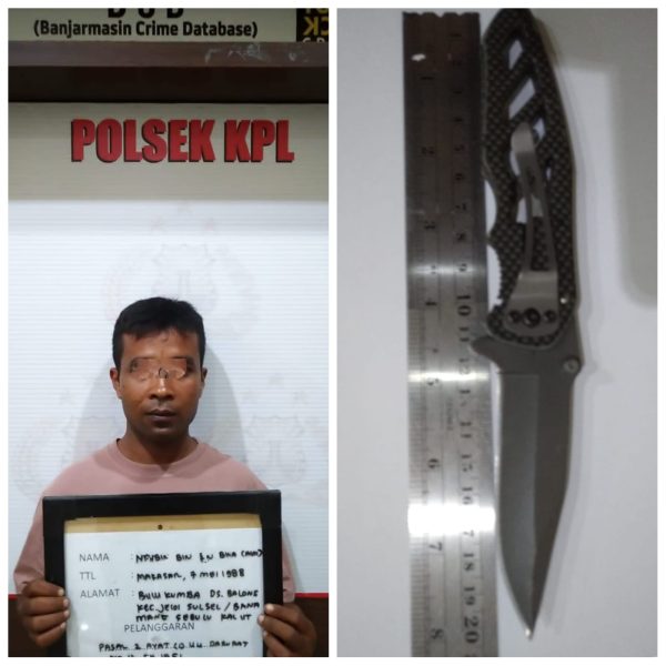Kapolsek KPL Banjarmasin, Kompol Aryansyah SIK, Jumat (13/1/2023) membenarkan telah mengamankan pelaku pembawa sajam dan dikenakan pasal 2 ayat (1) UU Darurat No. 12 Tahun 1951.”Kita amankan pada Kamis (12/1/2022) silam,” tambahnya.