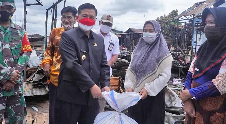 SuarIndonesia – Walikota Banjarmasin, H Ibnu Sina serahkan bantuan dari Pemerintah Kota Banjarmasin melalui Dinas Sosial Banjarmasin dan bantuan dari Relawan Banjarmasin Baiman untuk korban kebakaran di Gang Agustina, Kelurahan Alalak Selatan, Kecamatan Banjarmasin Utara, Rabu (18/08/2021).