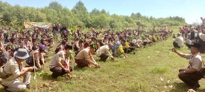 SuarIndonesia – Pemuda pemudi peserta Kemah Bela Negara Nasional di Kalimantan Selatan melaksanakan penanaman Mangrove di Desa Pagatan Besar, Kecamatan Takisung, Kabupaten Tanah Laut.