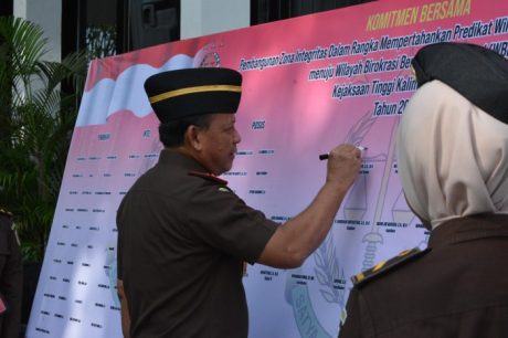 Kajati menyampaikan bahwa penandatanganan komitmen bersama ini, bukan saja sebuah ceremonial, tetapi terdapat tanggung jawab besar didalamnya yang harus kita pikul bersama secara sungguh-sungguh.