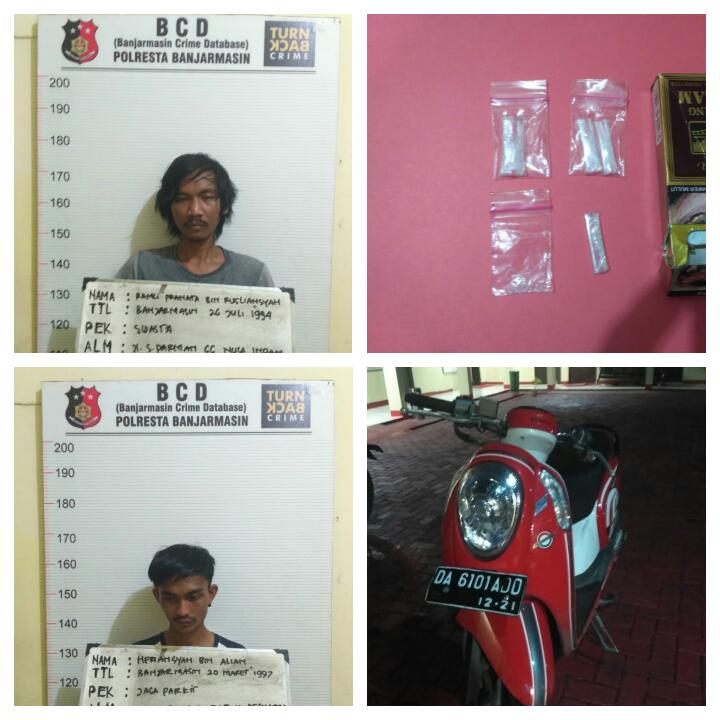 Dari mereka, polisi menyita barang bukti ima paket kecil diduga sabu dan satu unit sepeda motor dengan Nomor Polisi (Nopol) DA 6101 ADD.