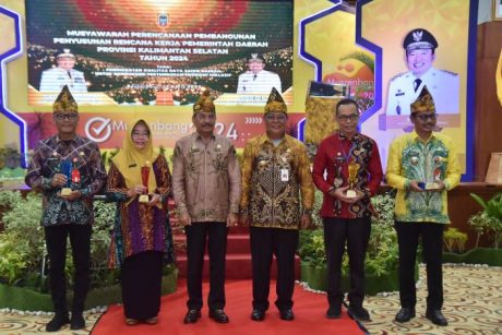 Gubernur Kalsel Sahbirin Noor atau Paman Birin menyampaikan ucapan selamat kepada Walikota Banjarbaru, Bupati Hulu Sungai Selatan, Bupati Tabalong dan Bupati Tanah Laut, atas penghargaan pembangunan yang diperoleh di tingkat Provinsi Kalsel.