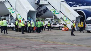 Sesuai jadwal, JCH diterbangkan pada pukul 12.20 WITA dengan menggunakan pesawat Garuda Indonesia Airbus nomor penerbangan GA 8101.