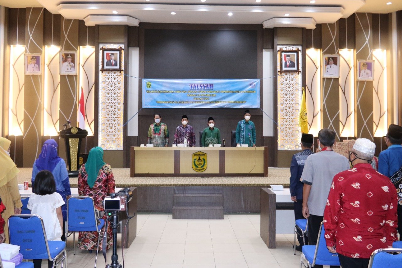 SuarIndonesia – Purnabakti Pemko Banjarmasin, menggelar kegiatan tausiyah di Aula Kayuh Baimbai, Balaikota Banjarmasin yang dihadiri, Walikota Banjarmasin, Ibnu Sina dan Wakil Walikota Banjarmasin, Arifin Noor, Sabtu (23/10/2021).