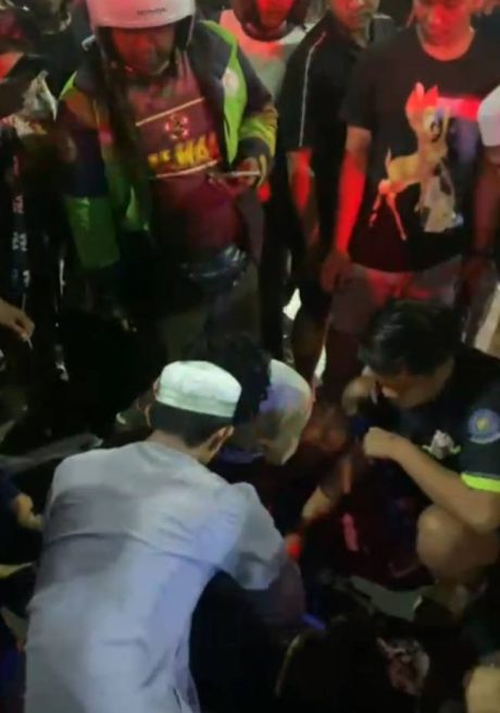 Kerumunan warga yang kebanyakan baru pulang salat Tarawih di Bulan Ramadan dan petugas hingga relawan disertai mengeevakuasi korban, yang tergeletak tak berdaya di bawah jembatan.