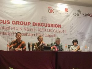 Bahkan dalam kesempatan Focus Group Discussion Implementasi POJK Nomor 18/ POJK 04/2019 tentang Perusahaan Efek Daerah juga terungkap bahwa OJK berencana menerbitkan Peraturan OJK (POJK) terkait Perusahaan Efek Daerah (PED) sebelum akhir tahun 2018.