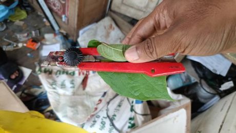 Untuk memastikan adanya dugaan melukai diri sendiri, petugas melakukan penyisiran dibelakang rumah tinggal sementara korban dan temukan pisau Cater yang masih ada bekas darah.