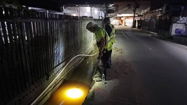 SuarIndonesia — Patroli malam hari, petugas NRW (Non Revenue Water) PT Air Minum Bandarmasih lakukan demi pencarian titik kebocoran yang lebih efektif.