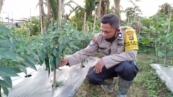 SuarIndonesia – Pinjam lahan tidur milik salah satu warga, kemudian kemudian Aiptu Nanang Purnomo,S.Sos, berkebun dan memelihara 8.000 ikan lele.